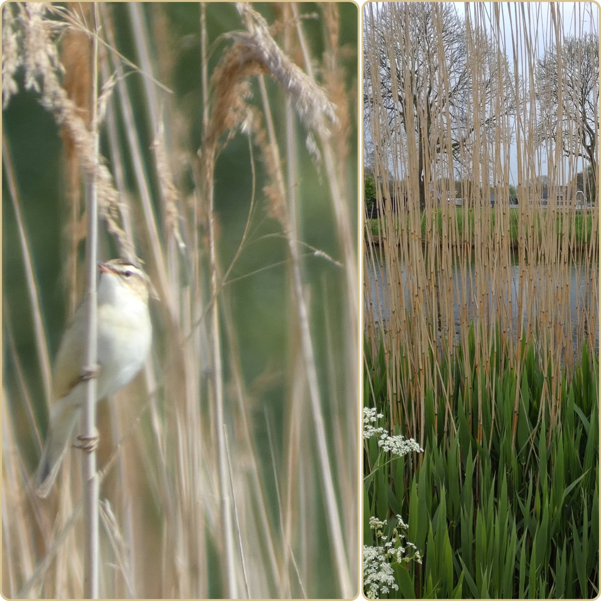 Gisteren liep ik tussen de buien door met onze hond over de kade langs de Kromme Mijdrecht. Vanuit het riet hoorde ik een rietzanger. Steeds vloog hij een stukje voor me uit tot het hem te veel werd en toen ging hij naar de overkant. Daar waren nog meer vogels te horen: merel, blauwborst, kleine karekiet, tjiftjaf, fitis en ook de koekoek (mijn eerste dit jaar). De rietzanger heb ik nog even gecheckt met de app die ik op mijn telefoon heb (BirdNET). Erg handig, maar er moet niet te veel verstoring zijn van omgevingsgeluiden. En de vogels moeten ook niet allemaal door elkaar heen zingen.