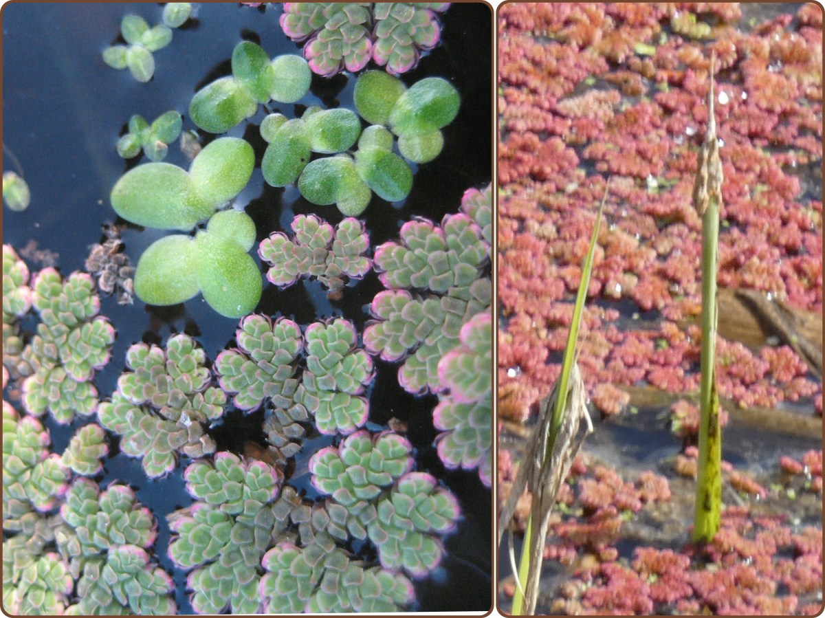 Grote kroosvaren komt oorspronkelijk uit subtropische delen van Noord- en Zuid-Amerika. Rond 1900 werd de soort voor het eerst in de Nederlandse natuur waargenomen. Grote kroosvaren is een eenjarige, drijvende waterplant met een geschubd uiterlijk en een doorsnede tot 5 cm. Op de foto links zie je het samen met eendenkroos. Grote kroosvaren is meestal groen, met een rode tint. In de herfst worden de plantjes onder invloed van de kou volledig rood (het lijkt dan net op gravel).