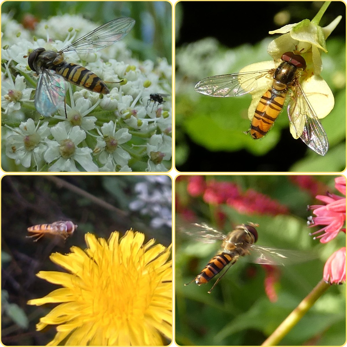 Eigenlijk zweven zweefvliegen niet. Ze kunnen ‘stil’ in de lucht hangen door per seconde 200-300 vleugelslagen te maken. Ze kunnen ook achter- en zijwaarts vliegen. Dat zul je een wesp nooit zien doen.