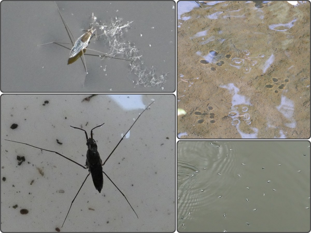 Oppervlaktewantsen kunnen alleen leven op schoon water. Zodra de oppervlaktespanning van het water lager is door bijvoorbeeld wasmiddelen, olie of chemicaliën in het water, zakken ze door het wateroppervlak en kunnen ze verdrinken. Op de foto rechtsboven zie je de schaduw van de kuiltjes die hun poten in een wateroppervlak maken.