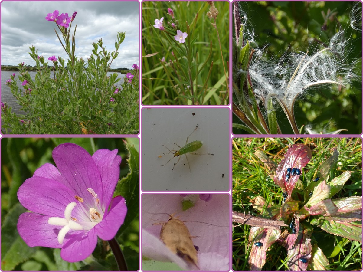 De bloemen worden bestoven door o.a. bijen en hommels. Er zijn verschillende insecten gespecialiseerd op basterdwederiken. Er is een geslacht van wilgenroosjesmotten (Mompha) dat wilgenroosje, harig wilgenroosje en andere basterdwederiken als waardplant heeft. Een voorbeeld is de gewone wilgenroosjesmot (foto midden onder). Op de foto rechtsonder zie je aardvlooien op de ontluikende rozetten van het harig wilgenroosje. Waarschijnlijk gaat het om de kattenstaartaardvlo die, zoals de naam al aangeeft, ook op grote kattenstaart voorkomt. Aardvlooien zijn bladkevers waarvan de dijen van de achterpoten sterk ontwikkeld zijn. Ze kunnen daarmee grote sprongen maken, net zoals een vlo. Tenslotte zie je in het midden nog een foto van de harig-wilgenroosjebochelwants: een blindwants die sappen van het harig wilgenroosje opzuigt.