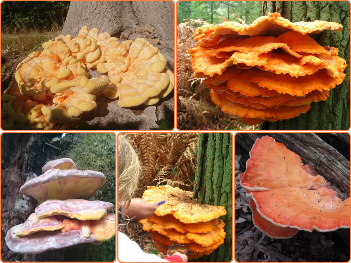 Een paddenstoel die erg opvalt en makkelijk te herkennen is, is de zwavelzwam. De jonge vruchtlichamen van deze zwam zijn geel en oranje van kleur en hebben een lichtgele groeirand. Na twee maanden takelt de paddenstoel af. Oudere exemplaren verbleken en worden bros. De resten kun je nog heel lang aan een boom zien zitten.