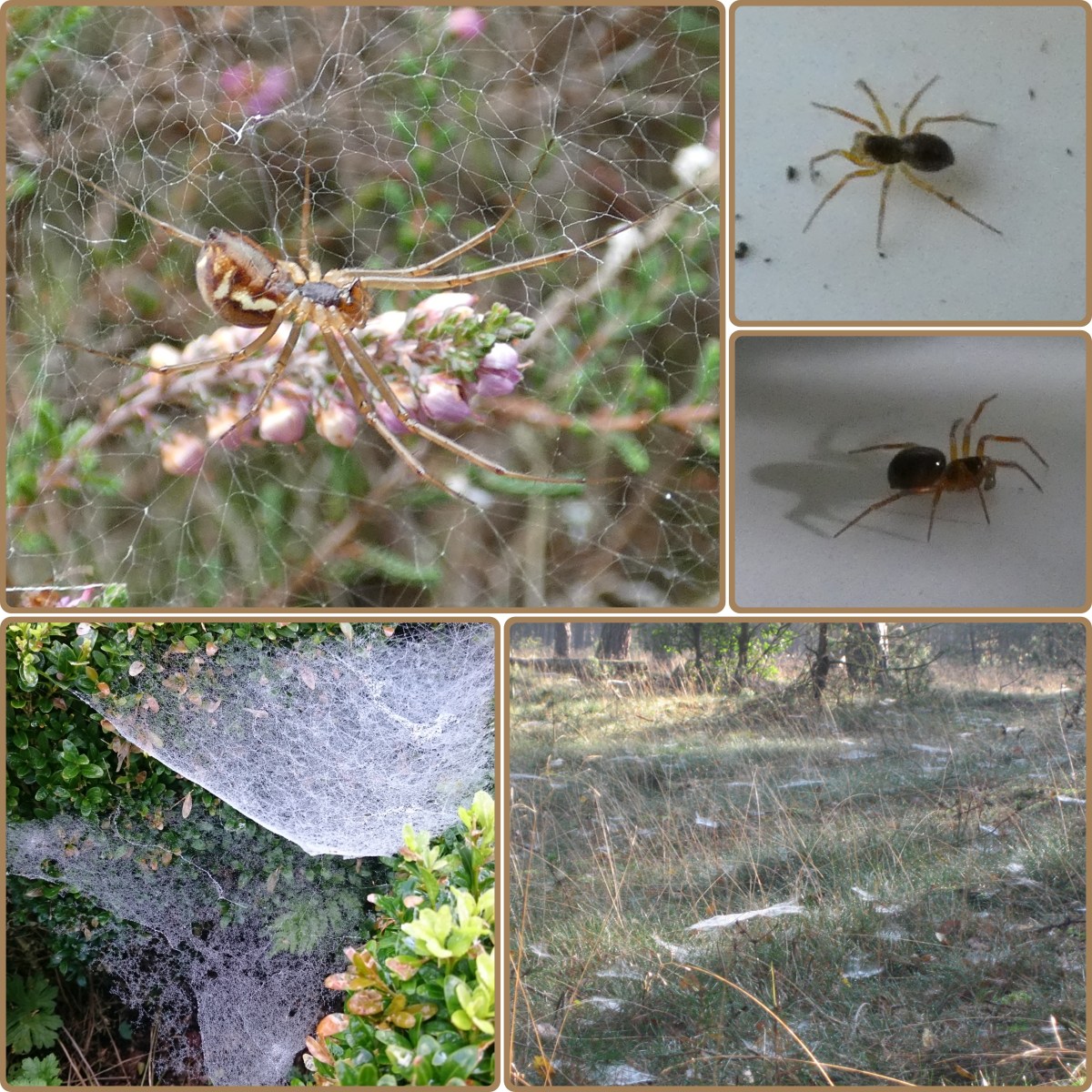 Ook vandaag kun je nog spinnen tellen in huis en tuin (https://www.tuintelling.nl/). Gisteren ging het om de meest opvallende spinnen, namelijk de wielwebspinnen. Vandaag gaat het om de familie met de meeste soorten in ons land (237), namelijk de hangmatspinnen, ook wel baldakijnspinnen genoemd. Een aantal soorten zijn middelgroot en vrij goed herkenbaar aan het patroon op hun achterlijf. Een groot deel zijn zogenaamde dwergspinnen: donkere, glanzende spinnetjes zonder achterlijfpatroon van een tot drie millimeter (foto’s rechts). Deze zijn alleen met een microscoop op naam te brengen. De exemplaren op de foto heb ik uit een struik geschud en opgevangen in een witte bak (vangmethode klopscherm).
