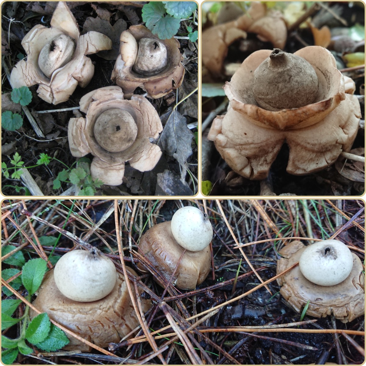 Op de collage zie je bovenaan gekraagde aardsterren. Onderaan is een andere soort; volgens ObsIdentify zou het om de gewimperde aardster gaan.