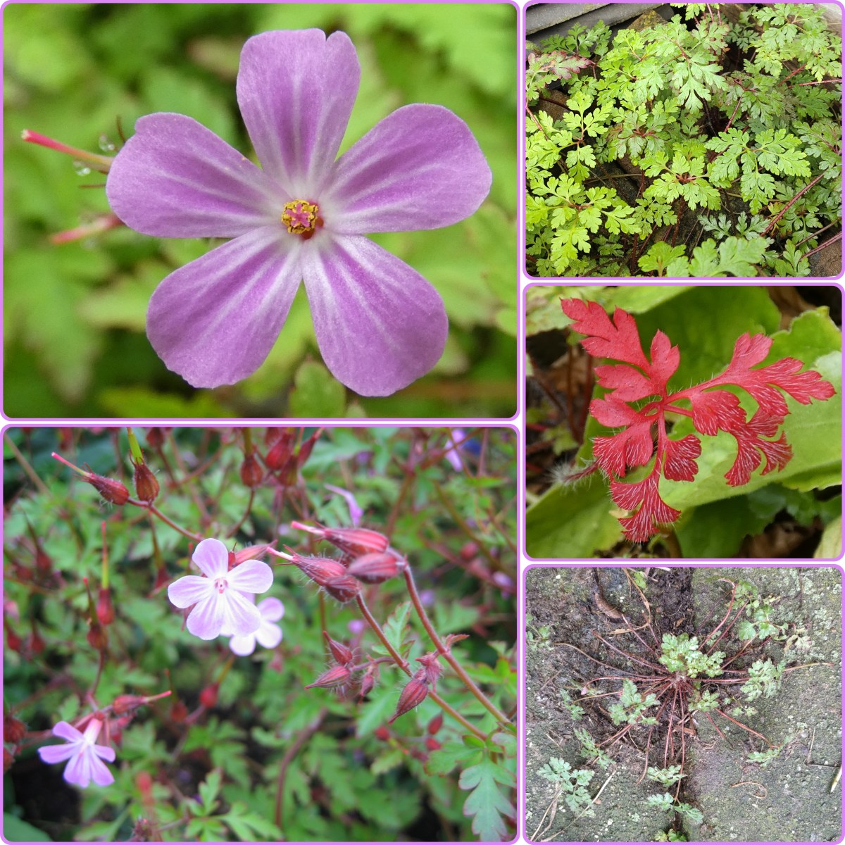 Vaak denken mensen dat (eenjarige) planten in het voorjaar kiemen, maar veel planten doen dat al in het najaar. Dat is het geval bij kleefkruid en ook bijvoorbeeld bij robertskruid. Deze plant uit de ooievaarsbekfamilie staat nu in verschillende fasen in onze tuin: met alleen blad, nog nabloeiend en met vruchten en als kiemplant.