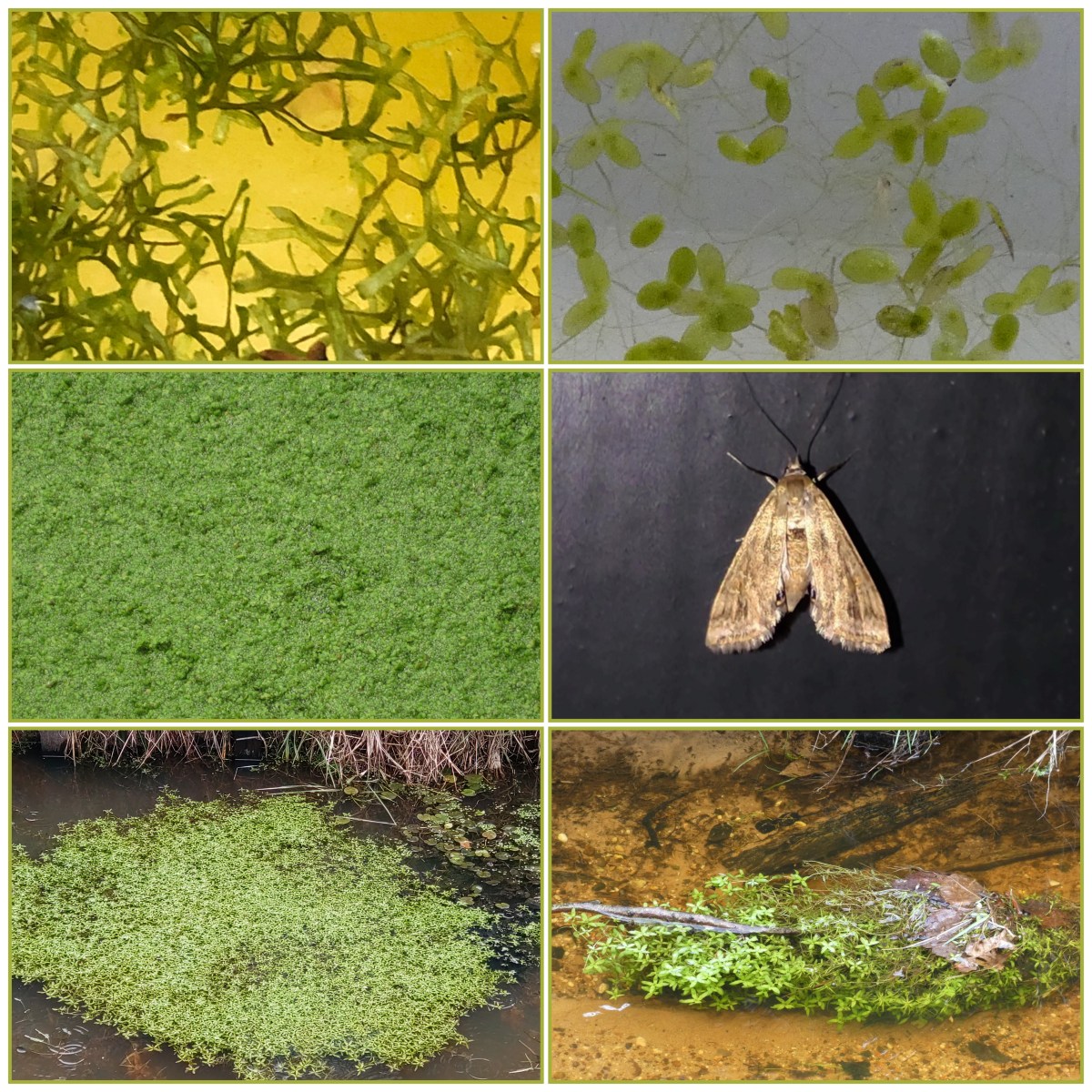 Je kunt het je bijna niet voorstellen, maar dat kleine kroos is ook nog waardplant voor verschillende insectensoorten. De rups van het kroosvlindertje (foto midden rechts) leeft onder water in een kokertje van kroosschijfjes dat met lucht gevuld is. Er bestaan ook mineerders van kroosschijfjes, namelijk de larven van het kroossnuittorretje en bepaalde oevervliegen.