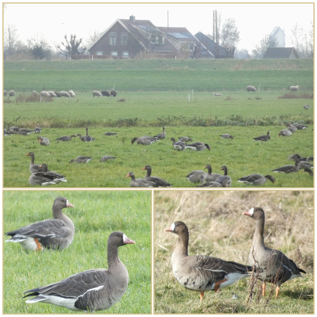 In de polders rond ons huis zien we momenteel overal groepen ganzen. Het gaat om kolganzen die op de toendra’s van Noordwest-Rusland en Siberië broeden, en in West-Europa overwinteren. In toenemende mate zijn ze ook in Friesland en het rivierengebied als broedvogel te vinden. Het gaat hierbij om een paar honderd broedparen. Het aantal kolganzen dat bij ons overwintert, bedraagt maximaal 900.000 exemplaren. Dat is 80% van de wereldpopulatie. Ze zijn hier van oktober tot in maart. Vaak zie je ze samen met andere ganzen zoals grauwe gans, rietganzen en brandgans.