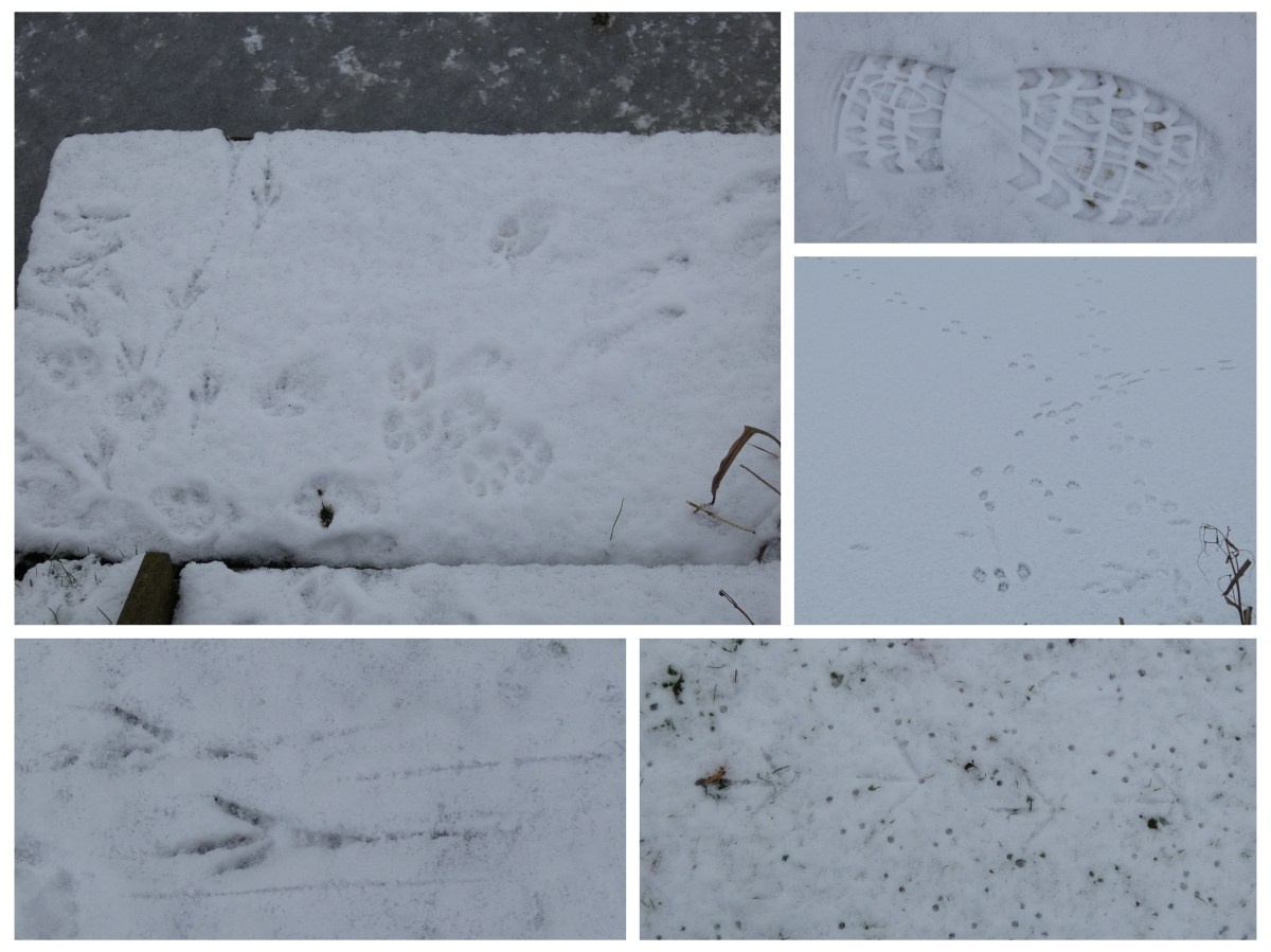 Ook in onze tuin zijn in het dunne laagje sneeuw dat er nog ligt, diverse sporen te vinden. De meest opvallende zijn die van eksters, fazanten, hazen en een kat. Tenminste, ik denk dat die van een kat is. Ik vind diersporen (en zeker pootafdrukken) best moeilijk ‘te lezen’. Daarom dat ik me heb opgegeven voor een online cursus diersporen.