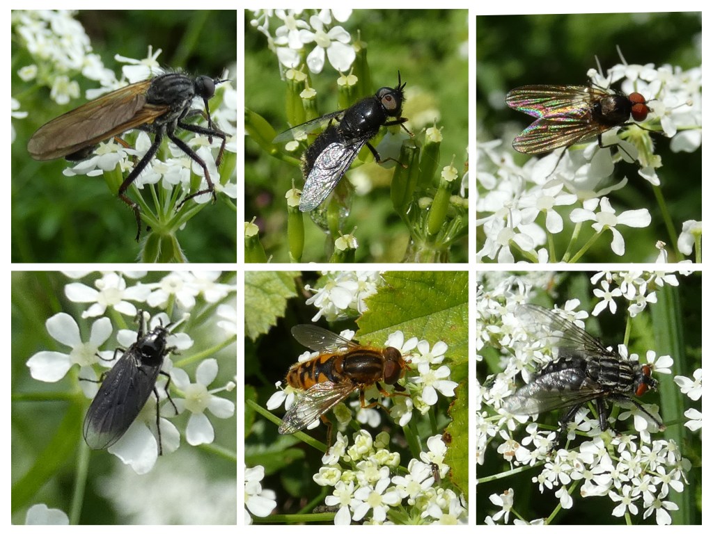 Dat er op schermbloemigen veel insecten te vinden zijn, wist ik wel. Nectar en stuifmeel liggen namelijk bij wijze van spreken voor het oprapen. En al die bloemenbezoekers trekken natuurlijk ook rovers zoals spinnen.