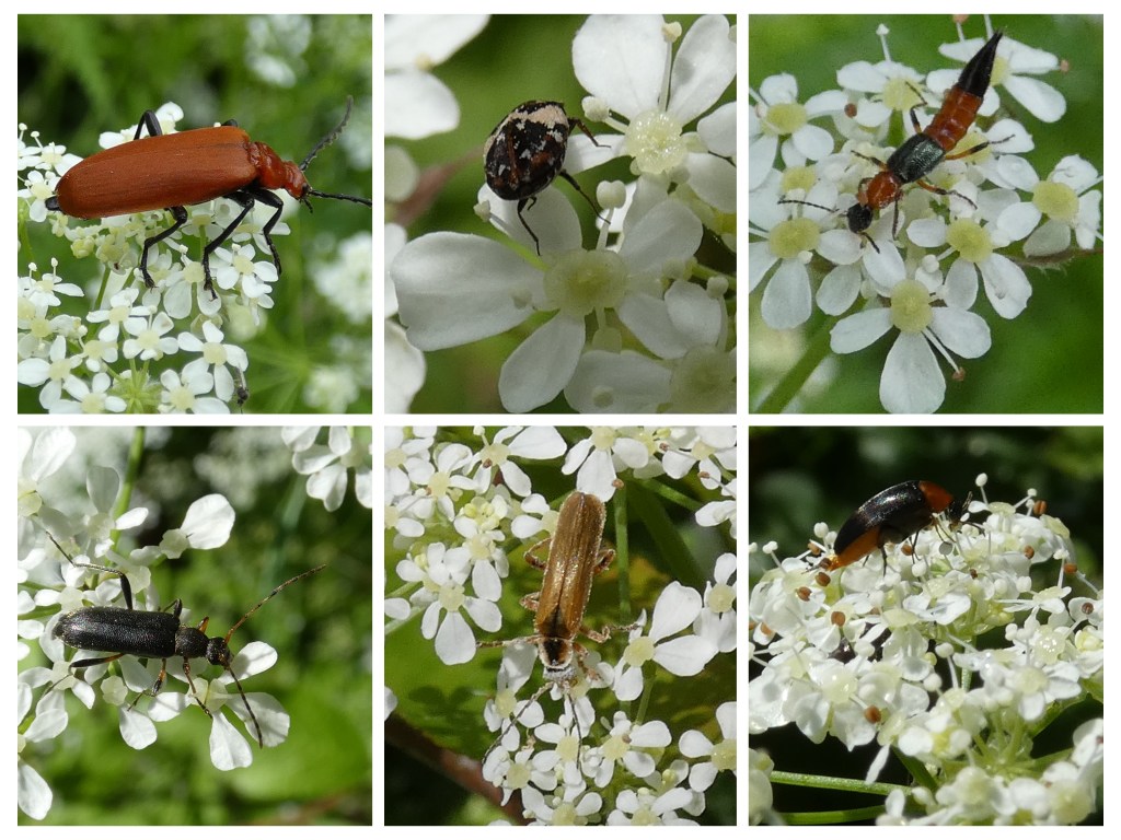 Tenslotte zes soorten kevers: de roodkopvuurkopkever, de vogelnestkever, een kortschildkever (Paederus spec.), de gewone bloesemboktor, een weekschild (Cantharis decipiens) en een spartelkever (Mordellochroa abdominalis).