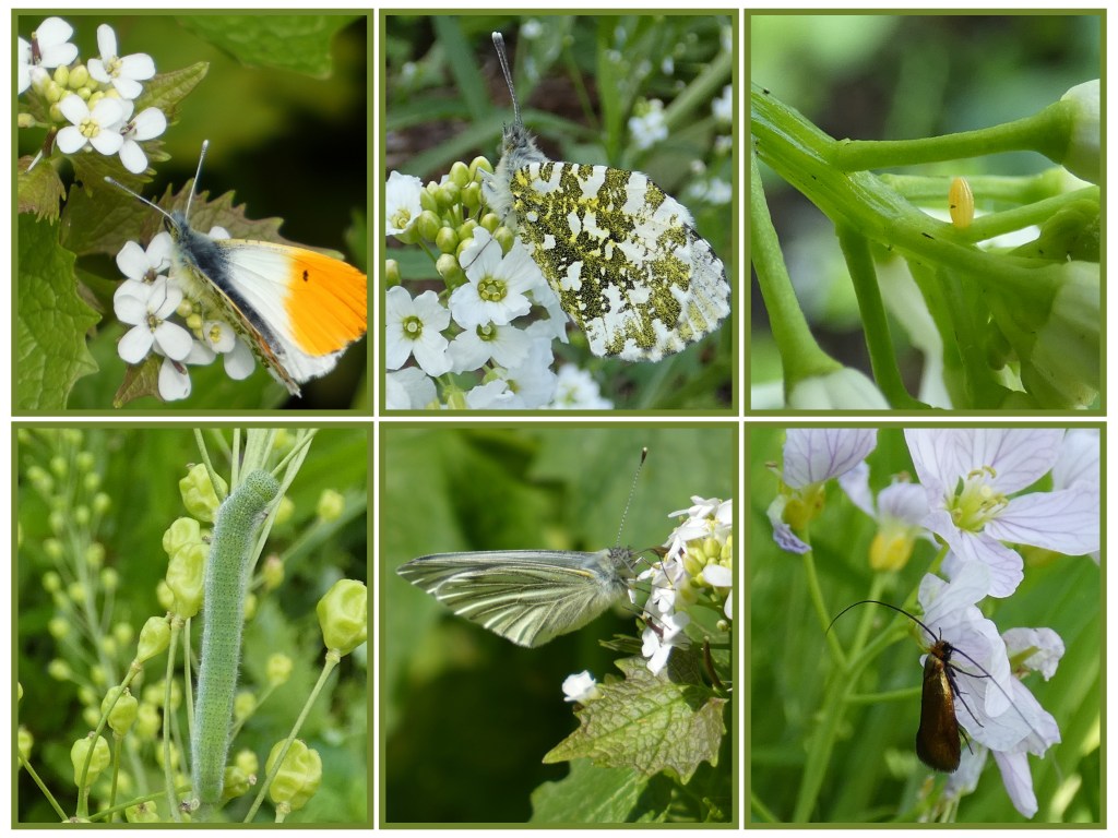 Het oranjetipje is overigens niet de enige vlinder die look-zonder-look (mede) als waardplant heeft. Ook het klein geaderd witje (foto middenonder) kan haar eitjes op look-zonder-look afzetten. De rupsen van deze vlinder eten van de bladeren. De rupsen van de pinksterbloemlangsprietmot vind je in zaden van look-zonder-look en pinksterbloemen.